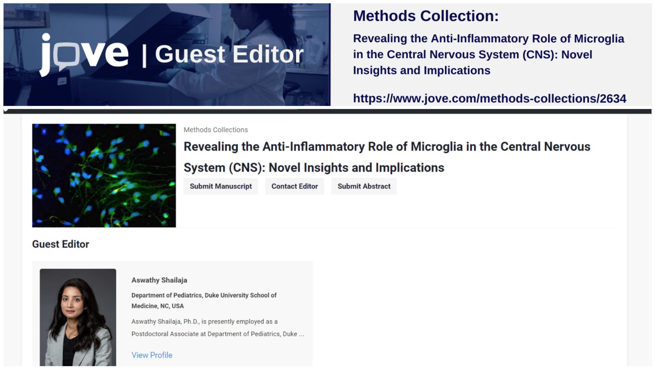 Guest Editor – Collection of Methods, Journal of Visualized Experiments (JoVE)